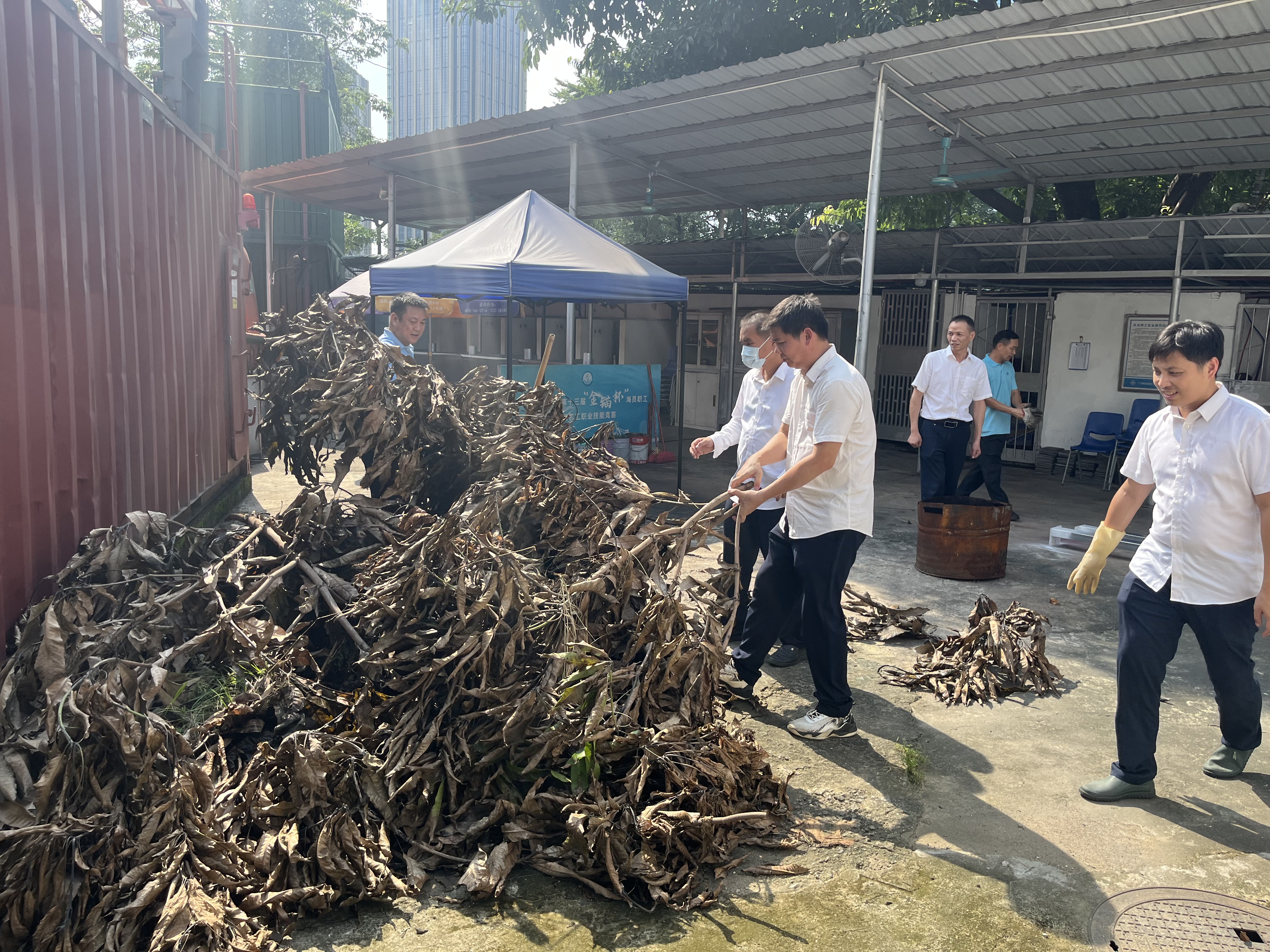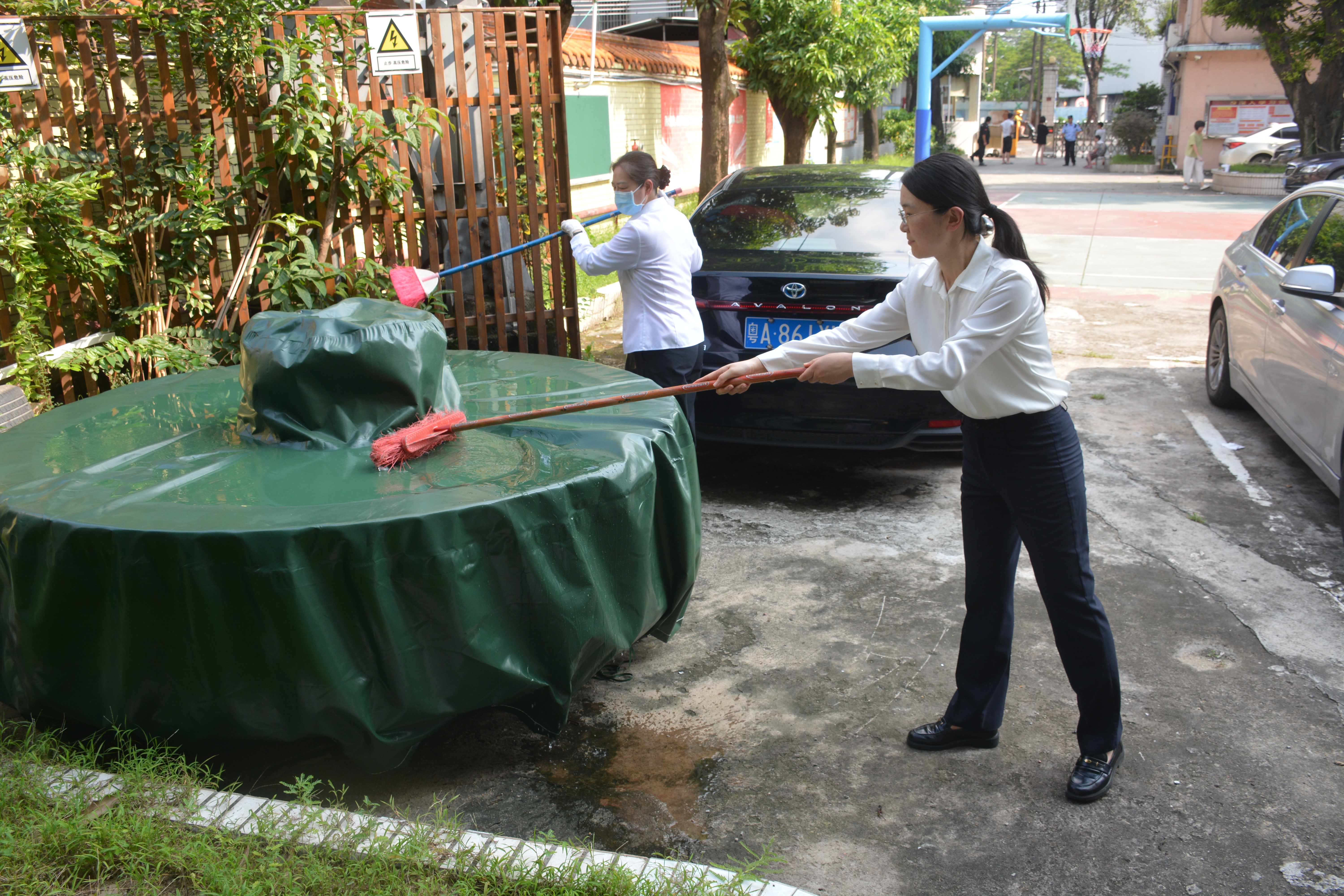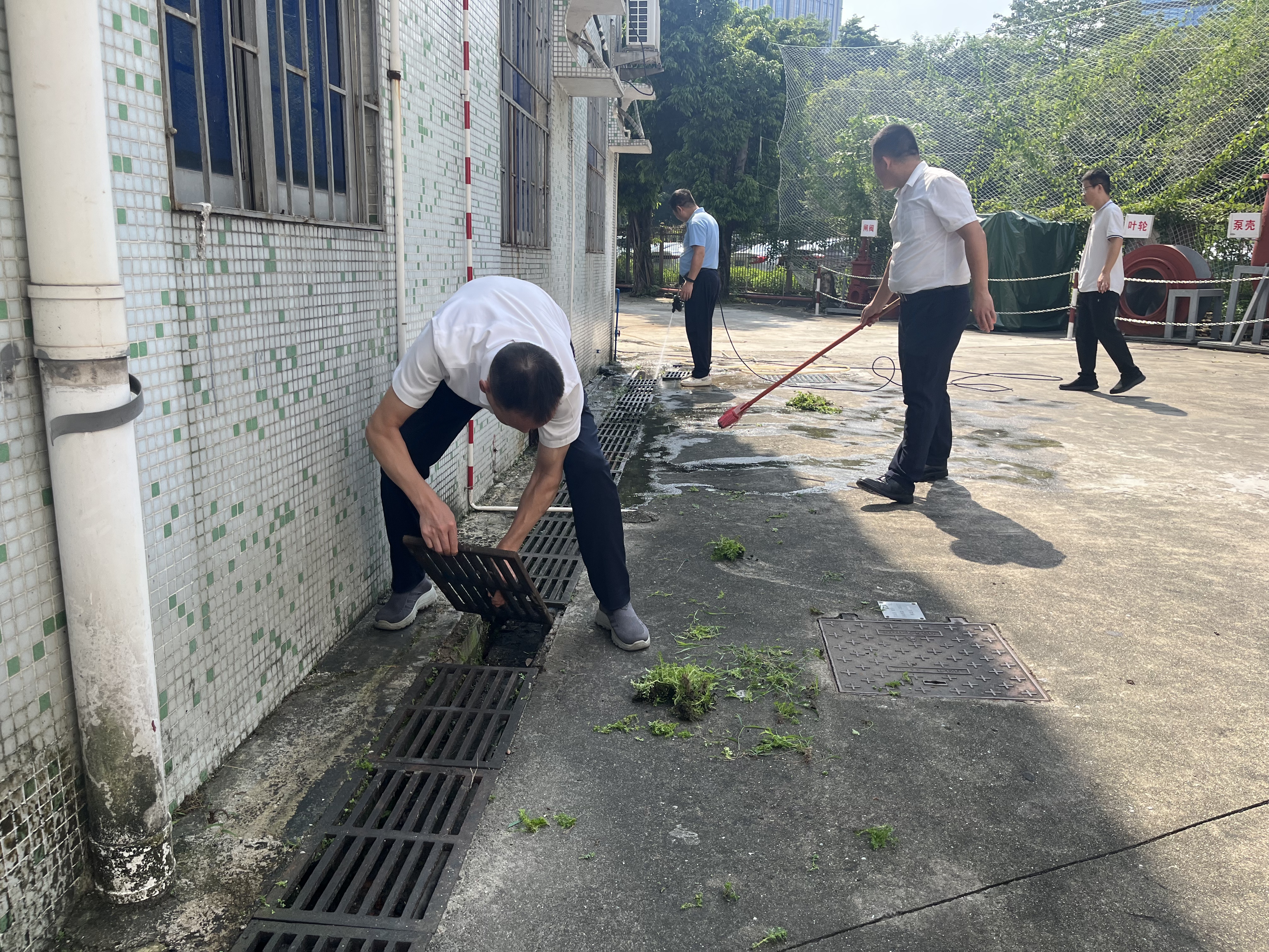 活动中,教职工们手持扫帚、铁锹、垃圾钳等工具,深入校园各个角落,重点清理绿化带、墙角砖缝、排水沟槽等卫生死角,不放过任何一处易积水的区域。大家认真清除落叶杂草,翻盆倒罐,对各类可能积水的闲置容器进行全面清理,有效消除了蚊虫孳生环境,从源头上切断蚊虫繁殖链。